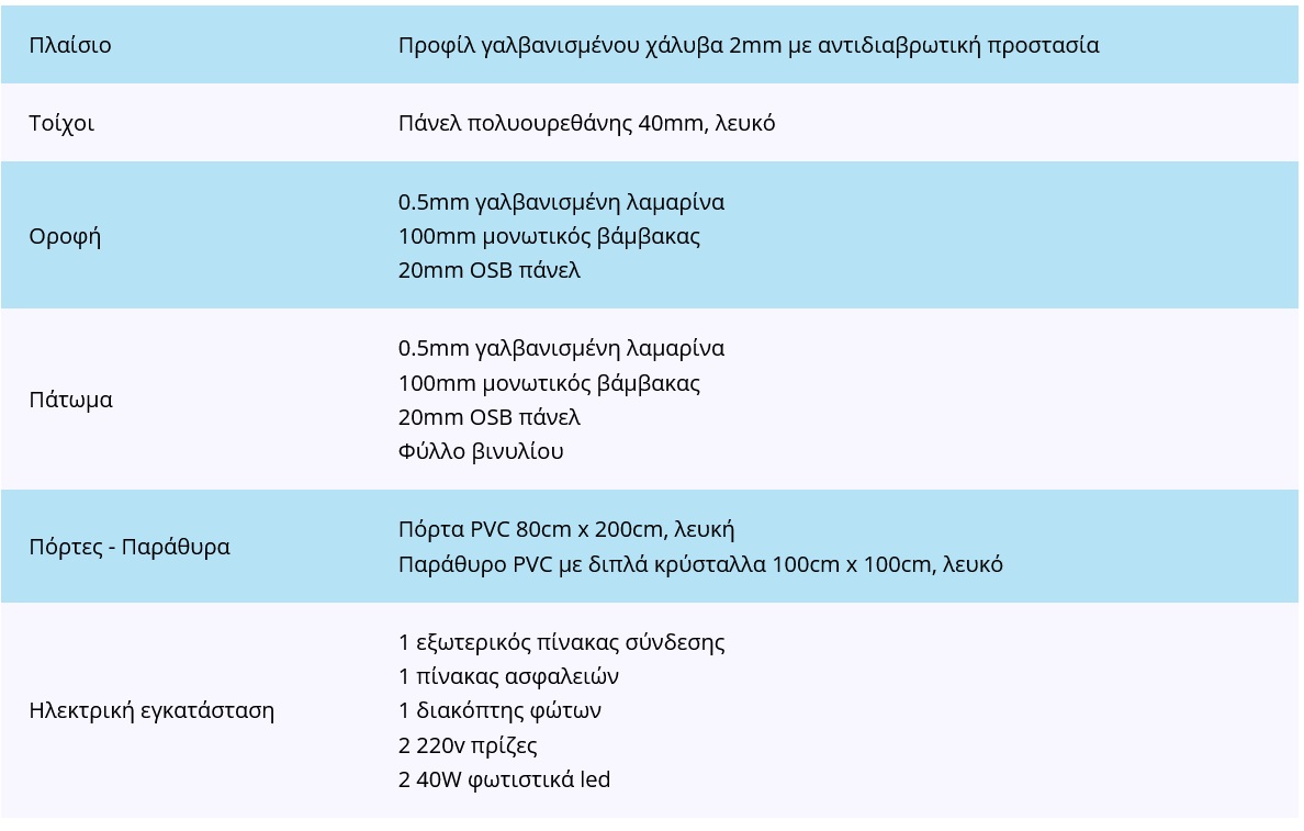 The specially made sandwich wall, roof and floor panels ensure high heat and sound insulation.
